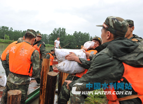 中國(guó)水利網(wǎng)站7月1日訊 (記者 張佳鑫 王玉泉 通訊員 吳曉珺 汪國(guó)慶)6月30日中午12點(diǎn)多,安徽和縣善厚鎮(zhèn)村民嚴(yán)德英,在查險(xiǎn)途中,看到橫河大堤一處背水坡有渾濁水往外冒,立即上報(bào)。經(jīng)驗(yàn)豐富的生產(chǎn)隊(duì)長(zhǎng)看到情況后當(dāng)機(jī)立斷,根據(jù)應(yīng)急預(yù)案進(jìn)行匯報(bào)。下午兩點(diǎn)左右,當(dāng)?shù)胤姥簇?fù)責(zé)人率隊(duì)趕到現(xiàn)場(chǎng),迅速組織民兵、民工搶險(xiǎn)。1小時(shí)內(nèi),馬鞍山市武警支隊(duì)官兵在加固完一處塌方點(diǎn)后,從附近匆匆趕來(lái),戮力同心,奮力打樁、添加土石方。馬鞍山市武警支隊(duì)賀副支隊(duì)長(zhǎng)說(shuō),自26日以來(lái),他們派出300人輪番上陣,參與和縣防汛搶險(xiǎn),已經(jīng)處理完4處危險(xiǎn)點(diǎn)。