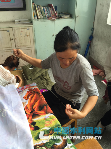 溫州市樂清縣避災(zāi)安置點被轉(zhuǎn)移的外來務(wù)工人員正在繡十字繡