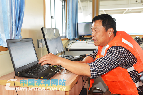57歲的彭艷明負(fù)責(zé)城陵磯水文站水位、流量、泥沙、水溫等測量數(shù)據(jù)材料的整編、初制,是一位干了30多年測報工作的老水文人。應(yīng)記者請求,他招呼來他的同事們給我們進(jìn)行ADCP測流演示。
