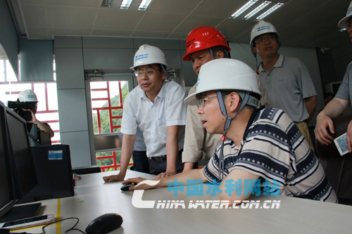 工作組在池潭水庫控制機(jī)房查看泄洪情況