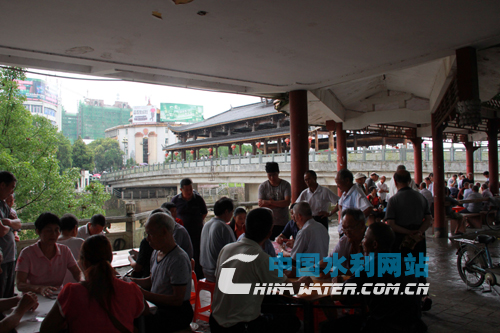 6月15日下午5點(diǎn)多,泰寧縣湖濱排澇站旁,人們?cè)跊鐾ぶ新犞曷曈崎e地打著牌。水利設(shè)施的有效運(yùn)行,讓人們?cè)谶@個(gè)多雨的時(shí)節(jié)如此安心。