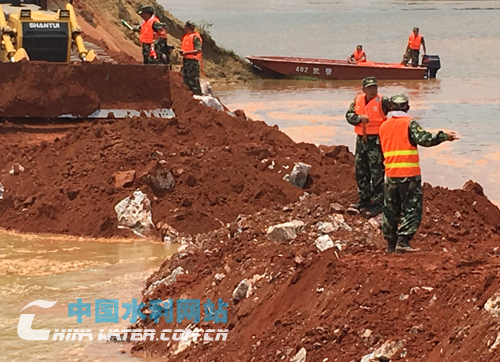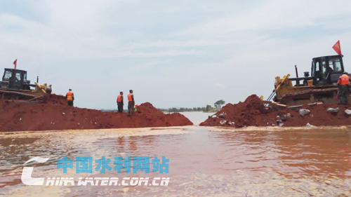 6月20日19時(shí)20分,鄱陽(yáng)縣向陽(yáng)圩因高水位急劇上升、昌江洪峰通過(guò)疊加作用出現(xiàn)潰口。6月22日13時(shí),經(jīng)過(guò)1天多的搶險(xiǎn)救災(zāi)與封堵準(zhǔn)備工作,向陽(yáng)圩封堵“戰(zhàn)斗”打響。“水電鐵軍”——武警水電第二總隊(duì)500多名官兵夜以繼日“作戰(zhàn)”,附近村民積極支援,軍民一心,人歇機(jī)不歇。經(jīng)過(guò)47小時(shí)的奮戰(zhàn),向陽(yáng)圩得以順利合龍。