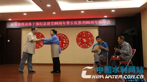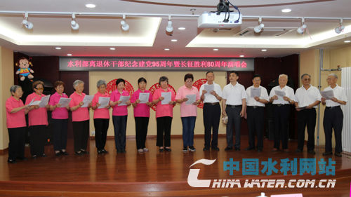 中國(guó)水利網(wǎng)站6月30日訊 (記者 劉彥海 通訊員 羅松)6月29日,水利部離退休干部在部老年大學(xué)舉辦革命歌曲演唱會(huì),紀(jì)念建黨95周年暨長(zhǎng)征勝利80周年。水利部副部長(zhǎng)、黨組成員、水利部老年大學(xué)校長(zhǎng)周學(xué)文,水利部老部長(zhǎng)李昌凡,參觀了老年大學(xué)活動(dòng)室及紀(jì)念建黨95周年書(shū)畫(huà)展,與老干部們一起觀看演出并與參演人員合影留念。