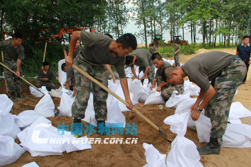 官兵們?cè)趽屟b沙袋
