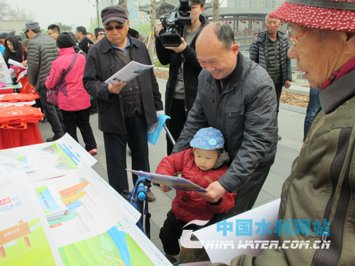 此前,3月22日上午,中國(guó)水利學(xué)會(huì)還與北京市水務(wù)局等單位聯(lián)合在金中都公園開展“世界水日”“中國(guó)水周”紀(jì)念活動(dòng)。組織者向市民發(fā)放了宣傳材料和紀(jì)念品,同時(shí)向廣大市民普及節(jié)水、愛水、護(hù)水的法律法規(guī)以及科學(xué)知識(shí),介紹了“踐行綠色發(fā)展 建設(shè)生態(tài)家園”的活動(dòng)主題以及北京黑臭水體治理、污水收集處理、南水北調(diào)工程供用水管理、中水再利用、海綿城市建設(shè)等方面的內(nèi)容。各展示區(qū)展板、宣傳材料、紀(jì)念品琳瑯滿目,每個(gè)展位都有專業(yè)人員認(rèn)真回答市民們咨詢的問題。