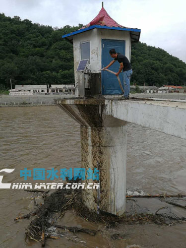 吉林省永吉縣口前水文站工作人員正在清理自動(dòng)雨量計(jì)中的淤泥(吳濤/攝)