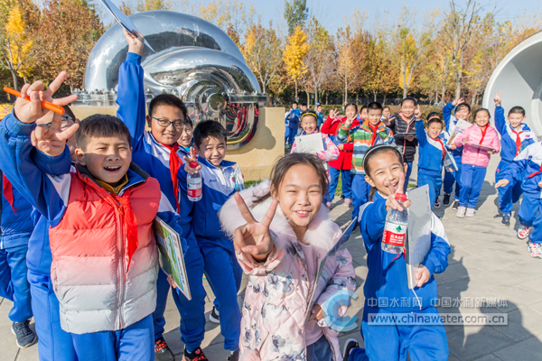 11月8日,在北京惠南莊泵站管理處,面對(duì)“南水北調(diào)工程怎么樣”的問(wèn)題,剛剛參觀完泵站的孩子們不約而同地做出了勝利的手勢(shì)