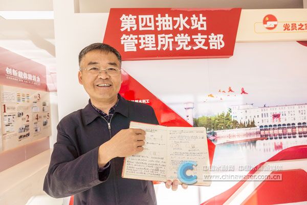 江都水利樞紐第四抽水站管理所所長(zhǎng)張宇介紹有著42年歷史的工程運(yùn)行日志