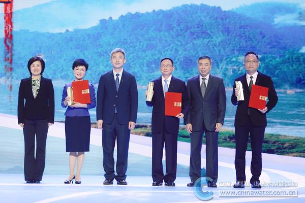 水利部黨組成員、副部長(zhǎng)田學(xué)斌,重慶市人民政府副市長(zhǎng)鄭向東為江蘇七浦塘、湖北清江、廣東東江頒發(fā)證書(shū)
