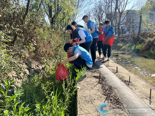 志愿者在清理河道白色垃圾