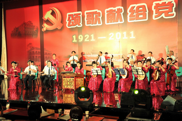 隨后,一臺精彩的演出逐次登場。舞蹈、童聲合唱、歌劇……百花齊放,演員們都以昂揚的精神風貌向黨的90歲生日獻禮,他們精彩的表演引來與會代表一陣陣熱烈的掌聲。全場大合唱《沒有共產黨就沒有新中國》的雄壯歌聲,將現場氣氛推至高潮,大會圓滿落幕。
