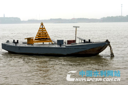 在拍攝現場,長江委水文下游局南京分局局長趙紅星向我們介紹了該局在線測流的自動釆集、傳輸、存儲系統的建設、運行情況,尤其是技術創(chuàng)新方面的獨到之處,他說:該局在線測流系統主要特點是實施了監(jiān)測斷面上采用固定式和浮標式設施,分別安裝了水平式ADCP和走航式ADCP、定位GPS,它的成功運行極大地提高了該局水文測報能力。