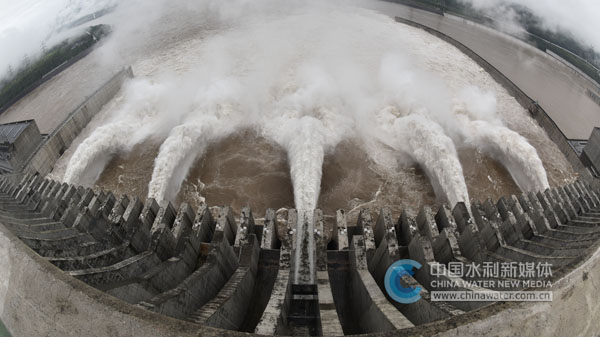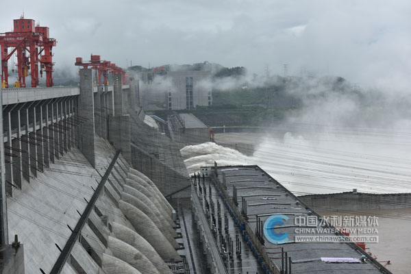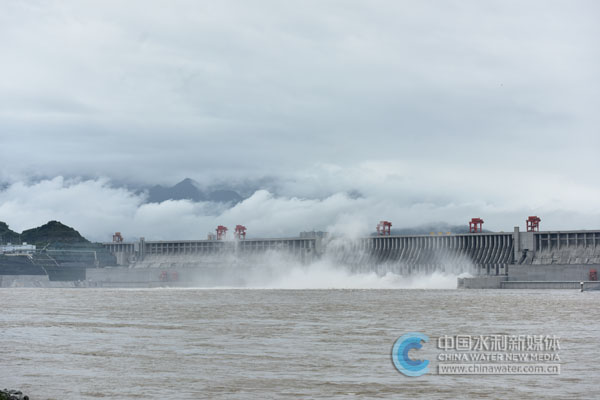 中國水利網(wǎng)站7月5日訊 7月5日6時,三峽水庫入庫流量漲至50000立方米/秒,長江2018年第1號洪水已在上游形成。經(jīng)國家防總同意,長江防總向中國長江三峽集團有限公司下發(fā)調(diào)度令,要求7月4日20時起逐步加大三峽水庫出庫流量,積極應對長江上游、漢江上游洪水。圖為7月5日,正在加大出庫流量的三峽水庫。(圖文:通訊員 張偉革