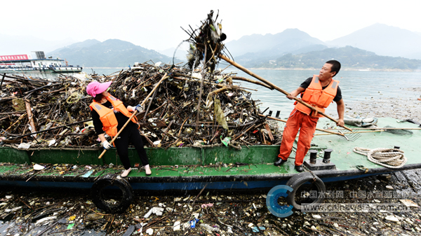 9月24日中秋節(jié),在舉國(guó)喜慶佳節(jié)親人團(tuán)圓之時(shí),在600多公里的長(zhǎng)江三峽上下,有400多名環(huán)衛(wèi)工作者放棄節(jié)假日休息,堅(jiān)守崗位,風(fēng)雨無阻奮戰(zhàn)在清理水上漂浮物一線,他們舍小家為大家,不辭辛勞守護(hù)著青山綠水美好家園。(攝影 張偉革
