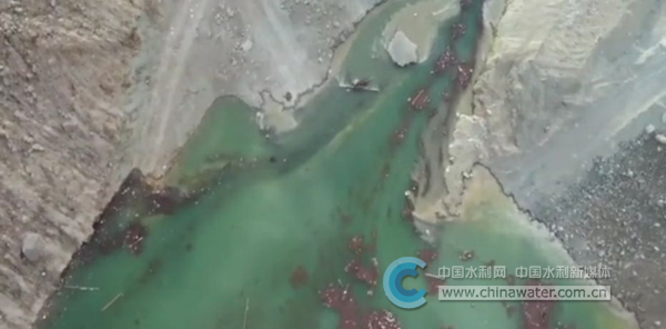 13日上午9時20分堰塞湖泄流畫面(前方 攝)