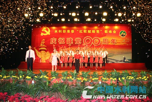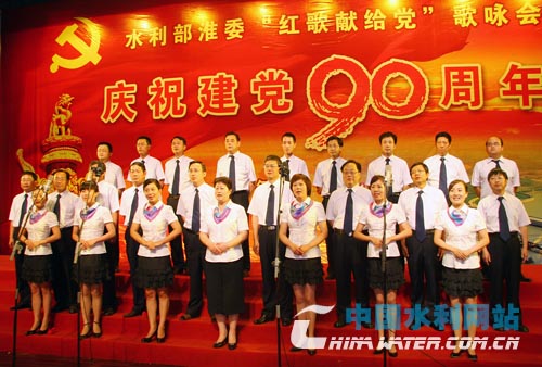 中國(guó)水利網(wǎng)站訊 熟悉的旋律追憶激情的歲月,心靈的節(jié)拍奏響歡慶的樂章!6月29日下午,蚌埠大劇院歌聲嘹亮、激情飛揚(yáng),豪邁優(yōu)美的紅色旋律飄向八方,淮委慶祝中國(guó)共產(chǎn)黨建黨90周年“紅歌獻(xiàn)給黨”歌詠會(huì)在這里舉行。淮委黨組書記、主任錢敏,黨組副書記、副主任肖幼,黨組成員、副主任汪斌,劉玉年,王翔,副巡視員周志強(qiáng)參加合唱。