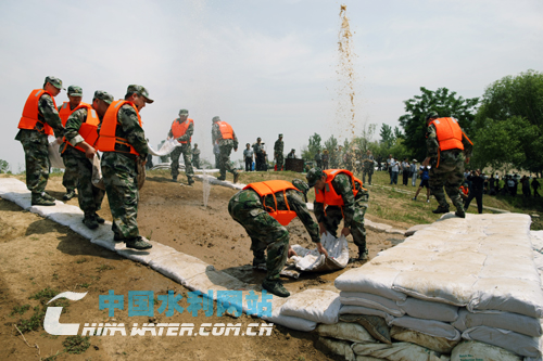 來自淮委、蚌埠陸軍預(yù)備役舟橋團與安徽省防汛機動搶險隊等多支應(yīng)急分隊參加演練。