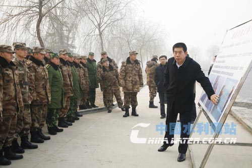 21日,濟(jì)南警備區(qū)參謀長(zhǎng)崔春榮帶領(lǐng)警備區(qū)機(jī)關(guān)及預(yù)備役舟橋團(tuán)、高炮團(tuán)官兵來(lái)到黃河濟(jì)南段進(jìn)行冬季野營(yíng)訓(xùn)練、并勘察黃河。結(jié)合黃河防凌需要,預(yù)備役團(tuán)分別對(duì)歷城蓋家溝險(xiǎn)工、天橋?yàn)T口險(xiǎn)工、槐蔭曹圈險(xiǎn)工等河段進(jìn)行實(shí)地勘察,部署兵力,安排防凌任務(wù)。許建中向崔春榮一行介紹了黃河凌汛的特性和今冬明春的防凌準(zhǔn)備工作,歷城、天橋、槐蔭河務(wù)局負(fù)責(zé)人匯報(bào)了本轄區(qū)的工程情況、防凌形勢(shì)和防凌措施等。
