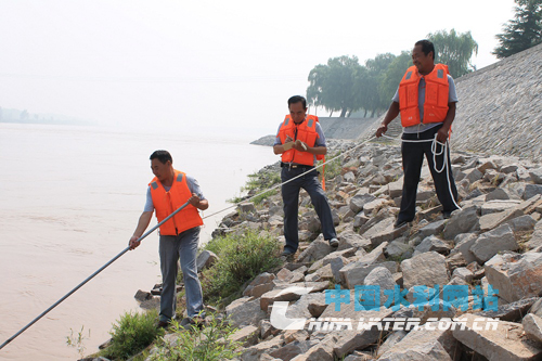 中國(guó)水利網(wǎng)站7月8日訊 一根近五米的鋼制探測(cè)桿,一條成人手指般粗的防護(hù)繩,三件橙色的防汛救生衣,構(gòu)筑了這個(gè)夏天黃河岸邊最單調(diào)卻又最美麗的一幅畫面。