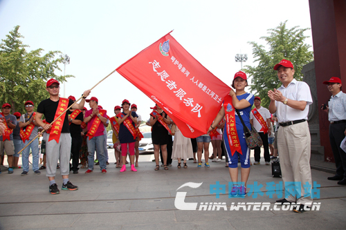7月25日,濟(jì)南百里黃河風(fēng)景區(qū)南門廣場熱鬧非凡,“黃河衛(wèi)士”志愿者服務(wù)站揭牌、授旗儀式在這里舉行。