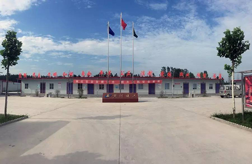 沿著長垣縣陽澤路一路向東,在即將上黃河大堤的時候,駛?cè)氡眰?cè)一個嶄新的小院,小院水泥地面,三面是白墻紅頂?shù)陌宸,院中央高高飄揚著3面彩旗,紅色的國旗,藍色的中國水利旗幟,還有綠色的黃河建工旗幟。這就是承擔(dān)第六標(biāo)段施工任務(wù)的黃河建工集團有限公司黃河下游防洪工程(河南段)堤防工程第六標(biāo)段項目經(jīng)理部。