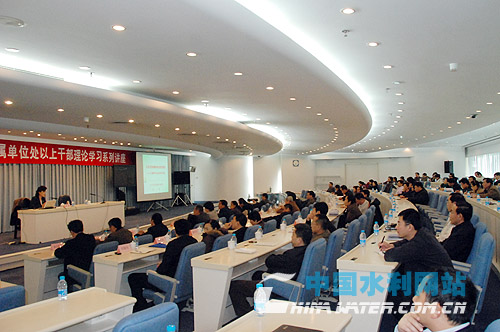 水利部人事司副司長(zhǎng)侯京民主持講座。部機(jī)關(guān)公務(wù)員和在京直屬單位處級(jí)以上干部共200余人聽取講座。