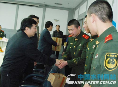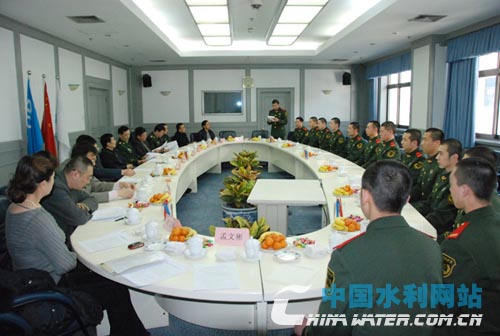 中國水利網(wǎng)站2月4日訊 2月3日,在2010年新春佳節(jié)即將到來之際,水利部召開春節(jié)慰問駐部武警戰(zhàn)士座談會。部黨組成員、辦公廳主任陳小江出席會議并講話,他代表陳雷部長和廣大機(jī)關(guān)干部職工,向武警水電部隊(duì)和駐部武警戰(zhàn)士表示衷心感謝和崇高敬意,并致以新春的良好祝愿。武警水電指揮部副參謀長程建國應(yīng)邀出席座談會,水利部辦公廳、機(jī)關(guān)服務(wù)局,國務(wù)院南水北調(diào)辦綜合司等有關(guān)單位負(fù)責(zé)同志及駐部警衛(wèi)班全體戰(zhàn)士參加座談會。