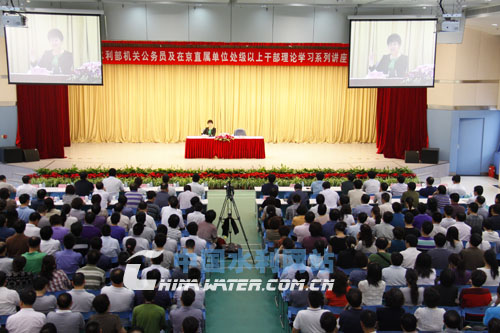 水利部人事司司長劉雅鳴主持講座。水利部機關(guān)公務(wù)員和在京直屬單位處級以上干部以及水利部黨校2011年春季處級干部進修班學(xué)員、水利部青聯(lián)委員等共500余人聆聽了本場講座。
