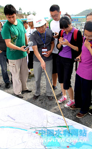 黔中水利樞紐建設(shè)管理局負(fù)責(zé)人向記者介紹工程建設(shè)情況