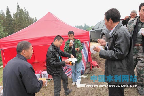 這個哨所是清水灣村搭建的。書記周國輔一邊吃著早飯,一邊告訴記者,我們村一共來了70人,最大年齡68歲,今天是上堤第4天,我們的任務是看好這200米長的堤段,分2個組,每24小時輪班一次,察看堤坡有無滲水、管涌現(xiàn)象發(fā)生,從開閘分流到現(xiàn)在,還沒有發(fā)現(xiàn)異,F(xiàn)象。