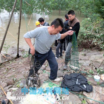 站在他坡下的那位捕魚人抬起搬網(wǎng),又捕到幾條鯽魚,他的網(wǎng)兜里已經(jīng)有十幾斤魚了。