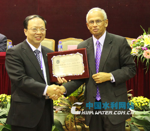 國際第三世界水管理中心主席 Asit K. Biswas教授向夏軍研究員頒獎