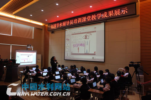 學(xué)員們?cè)谧筒└咝聦?shí)驗(yàn)小學(xué)觀摩節(jié)水主題班會(huì)