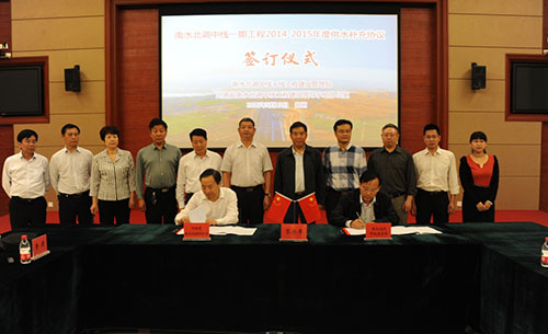 中國水利網(wǎng)站訊 2015年5月13日,南水北調(diào)中線工程河南省供水補充協(xié)議簽訂儀式在鄭州率先舉行。中線建管局負責人與河南省南水北調(diào)辦負責人簽署了《南水北調(diào)中線一期工程2014-2015年度供水補充協(xié)議》。