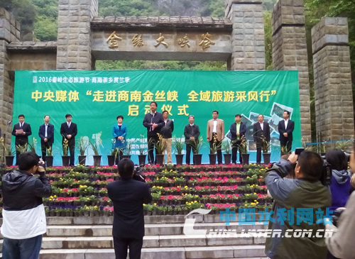 中國(guó)水利網(wǎng)站4月27日訊 (記者 胡爭(zhēng)上) 4月23日上午,為期兩天的2016秦嶺生態(tài)旅游節(jié)——商南茶鄉(xiāng)賞蘭季暨中央媒體“走進(jìn)金絲峽、全域旅游采風(fēng)行”活動(dòng)啟動(dòng)儀式在陜西商南縣金絲峽國(guó)家水利風(fēng)景區(qū)隆重舉行。