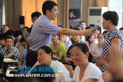 中線建管局宣傳中心主任侯純輝與移民家長互動(dòng)交流。程功攝