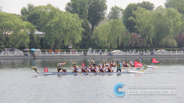 龍舟傳統(tǒng)300米直線競(jìng)速賽,第一次接觸龍舟運(yùn)動(dòng)的水利部代表隊(duì),在起航階段落后半個(gè)船身的不利情況下,鼓手鼓點(diǎn)節(jié)奏鮮明,鏗鏘有力,10名劃槳手齊心協(xié)力,步調(diào)一致,奮力劃行,最終以領(lǐng)先對(duì)手6秒(一個(gè)多船身)的優(yōu)勢(shì)獲得了小組賽的勝利。