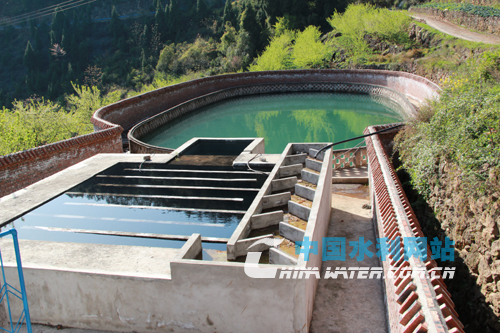 從公路向下望去,半山腰,一座橢圓形的人飲水池鑲嵌蔥翠的樹叢之中。池里裝滿了水,微風(fēng)拂過,湛藍(lán)的水面蕩起絲絲波紋,在陽光的照耀下閃閃發(fā)光,宛如遺落山間的寶石。