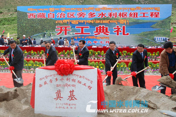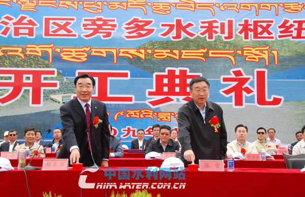 陳雷、張慶黎、向巴平措等領(lǐng)導(dǎo)共同為旁多水利樞紐工程奠基