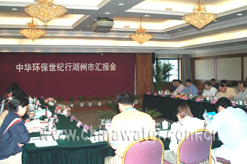 在湖州采訪期間,記者聽取了湖州市政府的有關(guān)情況介紹,察看了太湖入湖口長兜港,并到安吉縣現(xiàn)場采訪了太湖主要入湖河流西苕溪源頭水污染治理情況,到長興縣現(xiàn)場采訪了包漾河飲用水源地保護情況、夾浦鎮(zhèn)污水處理廠污泥資源綜合利用情況。