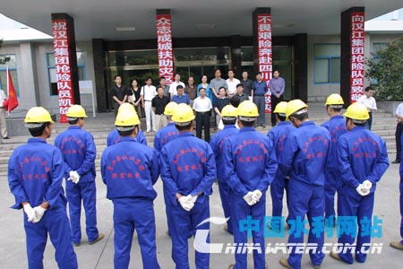 中國水利網(wǎng)站5月19日訊 (通訊員 葉金華 吳丹明)漢江集團赴四川省汶川縣特大地震災區(qū)參加抗震救災搶險的第二批13名隊員,已于5月19日8時從漢江集團機關大院出發(fā)。
