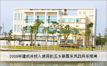 三是大力抓好重點骨干工程建設。1996年以來,先后投資5億多元建設小欖泵站東站和北站、文明圍排澇系統(tǒng)、大涌口水閘等重點水利工程。特別是1998年投資2億元建設的東河水利樞紐工程,是中山市水利建設史上最大的單項水利樞紐工程。泵站總裝機1.08萬千瓦,安裝大型全調節(jié)立式軸流泵6臺,設計流量273立方米每秒,單站流量當時居全國第三、廣東省第一。該工程投入運行不僅有效緩解中山城區(qū)內澇水浸現(xiàn)象,而且有效改善中山市的母親河——岐江河水環(huán)境,提升整個中順大圍的排澇、灌溉、航運能力。