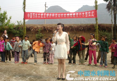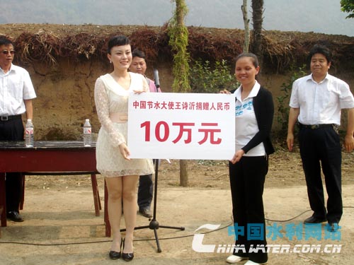 中國水利網(wǎng)站訊 中國節(jié)水大使王詩沂4月14日深入云南省文山縣平壩鎮(zhèn)小壩子村參與抗旱救災(zāi),為旱區(qū)水利職工、干部群眾深情演唱,宣傳節(jié)約用水知識,捐款10萬元支援文山縣小壩子村中寨修建小水窖,從長遠(yuǎn)幫助當(dāng)?shù)厝罕娊鉀Q吃水難的問題。