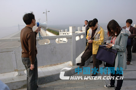采訪組與建管局負(fù)責(zé)人就水庫(kù)建設(shè)與管理等內(nèi)容進(jìn)行座談和采訪