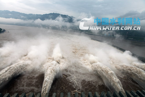 中國水利網(wǎng)站訊(記者 胡爭上)三峽大壩,一派寧靜,站在大壩上會聽到如火車穿過隧道般的轟鳴,8個深孔正以43000立方米每秒的流量泄洪,江水似巨龍奔騰,在夜晚的燈光映照下,散出一片黃中帶紫的輕霧。7月24日晚8時許,入庫洪峰流量71200立方米每秒的今年長江4號洪峰安然通過三峽大壩。