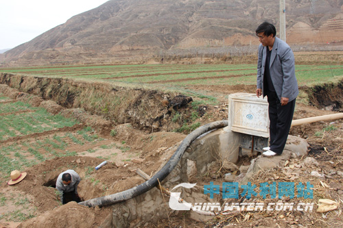 靜寧縣水利局工作人員正在調(diào)試灌溉設備