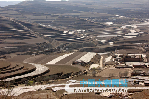 沿著崎嶇的盤(pán)山公路向旱情嚴(yán)重的會(huì)寧縣漢家岔鄉(xiāng)前進(jìn),山勢(shì)越發(fā)險(xiǎn)峻,視野也越來(lái)越開(kāi)闊,深邃的溝谷、山澗的村莊、大片的梯田,西北人民“改山換地”的激情與豪邁讓人震撼不已。雖然沒(méi)有水,但是他們將過(guò)去山坡上的“三跑田”改造成了梯田,蓄住雨水。一眼望去,可以看見(jiàn)田間分布著眾多集雨水窖。