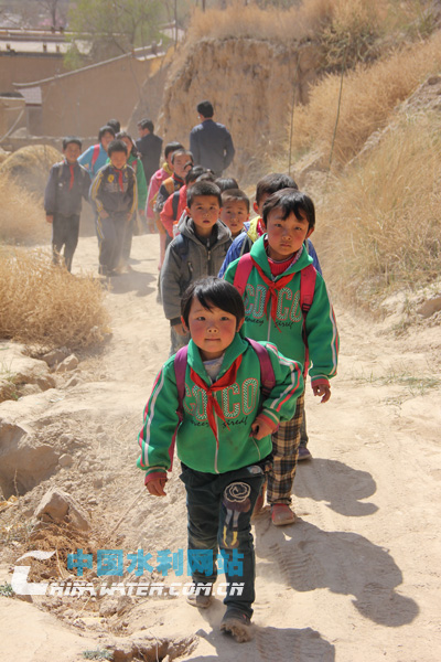 在缺水的旱山村,孩子們順著渴得冒煙的土路排隊(duì)上學(xué)