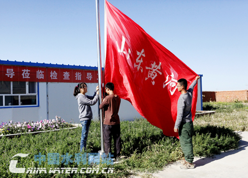 每天,黃河職工都在新疆布爾津河西水庫(kù)引輸水工程項(xiàng)目部升起“黃河鐵軍”的旗子,這是2012年9月的一天升旗的情景