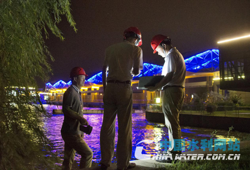 夜深了,帶班領(lǐng)導(dǎo)迮振榮再到公路橋上查看一下閘門情況,也要準(zhǔn)備休息了。本站記者